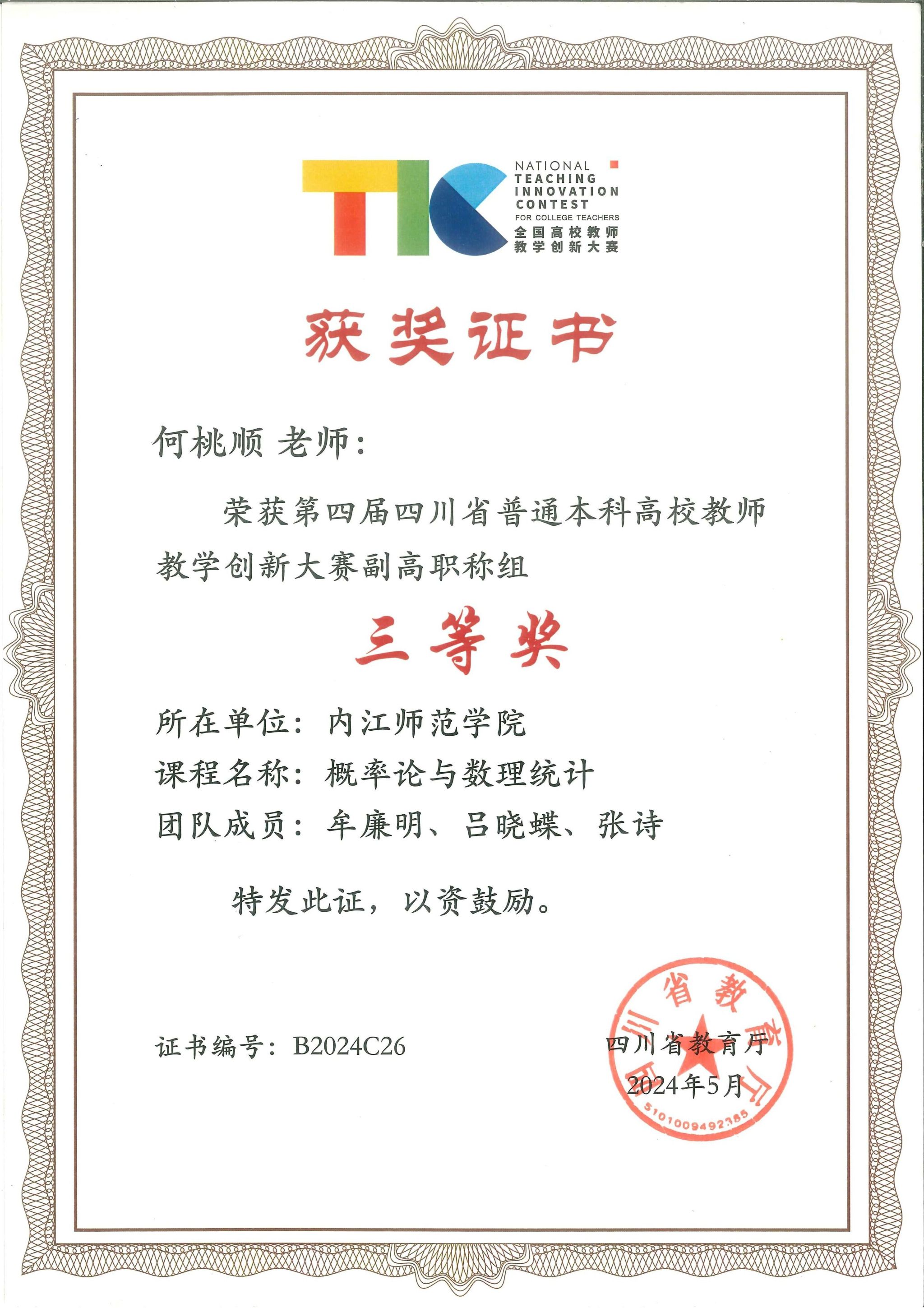 近年来,团队在课程思政领域成果丰硕:牵头主持四川首批课程思政标杆院系、四川省数学与应用数学专业课程思政典型案例、省级课程思政示范教学团队、省级课程思政示范课程等重点项目;参与完成四川省三全育人综合改革试点院系、四川省首批课程思政典型案例(应用数学课程群)等综合改革任务;教师在各级教学竞赛中表现亮眼,斩获校级课程思政教学竞赛一等奖3项、二等奖3项,四川省数学微课程设计竞赛二等奖1项,全国数学微课程设计竞赛西南赛区一等奖1项,校级青年教师讲课比赛一等奖1项,形成了“课程建设有示范标杆、教师发展有典型榜样、团队协作有强大合力”的思政育人新格局,切实将立德树人根本任务贯穿教育教学全过程,为培养德才兼备的数学人才奠定了坚实思想基础。