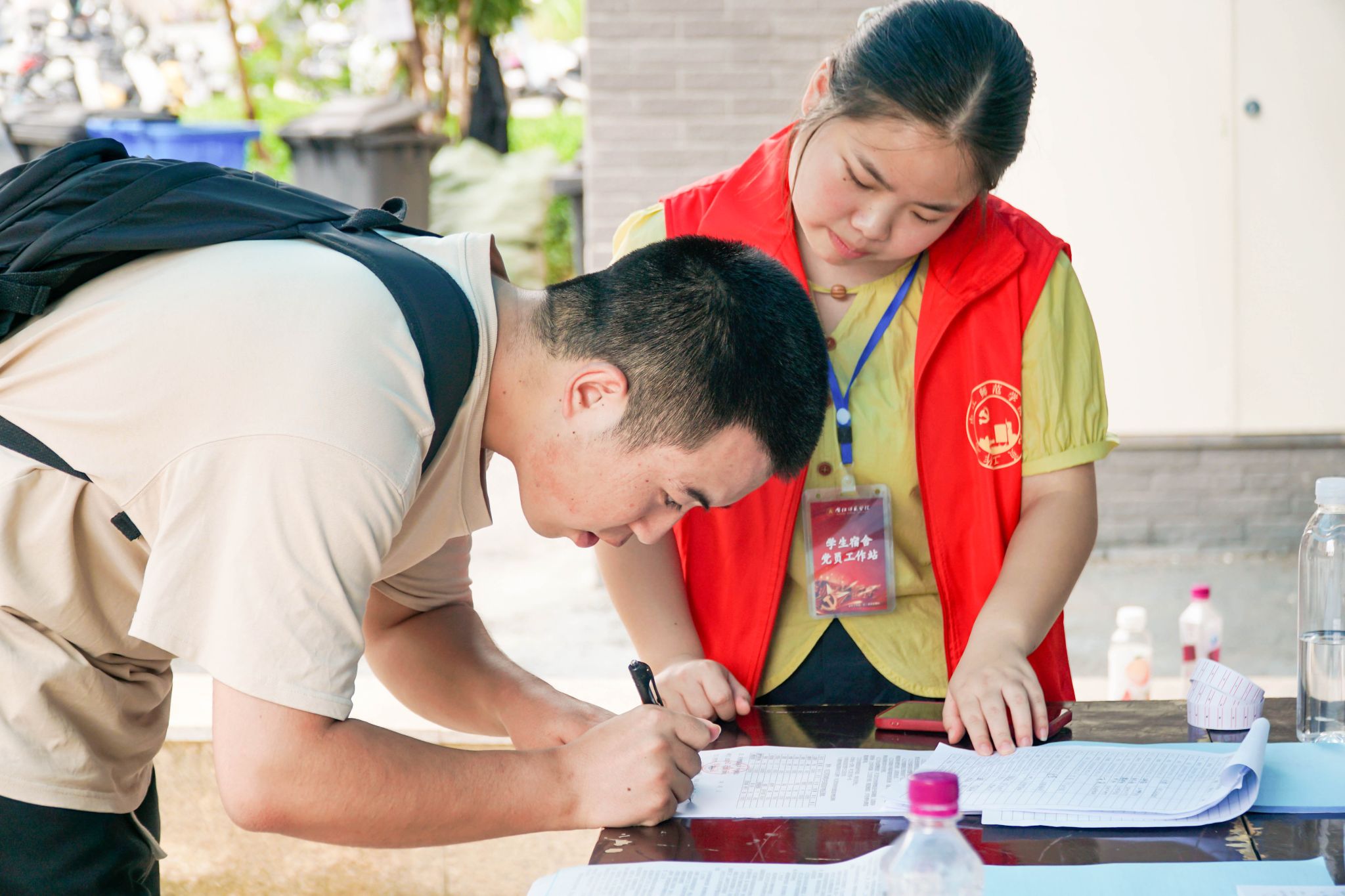 当日上午,校党委副书记、校长郭云东,党委常委、副校长张志勇率队穿梭于弘文楼、格致楼、一食堂与留学生公寓,与新生及家长亲切攀谈:“一路过来辛苦吗?”“报到顺利吗?”“对学校的第一印象怎么样?”关切的话语如春风化雨,让初离家的学子心头暖意融融。在与志愿者的交流中,校领导一边为工作人员的辛勤付出“点赞”,一边叮嘱:“要把服务做细,更要照顾好自己。”