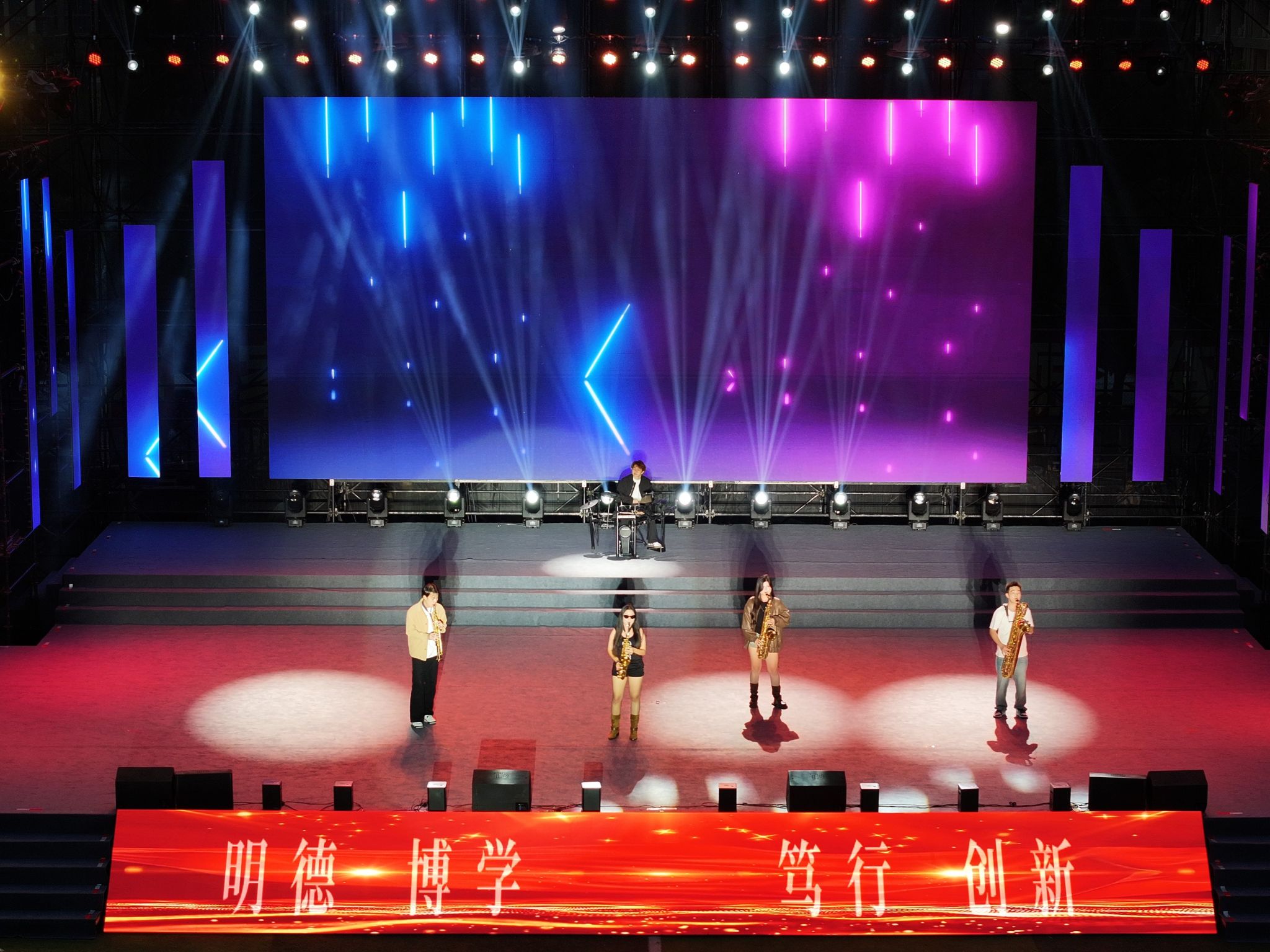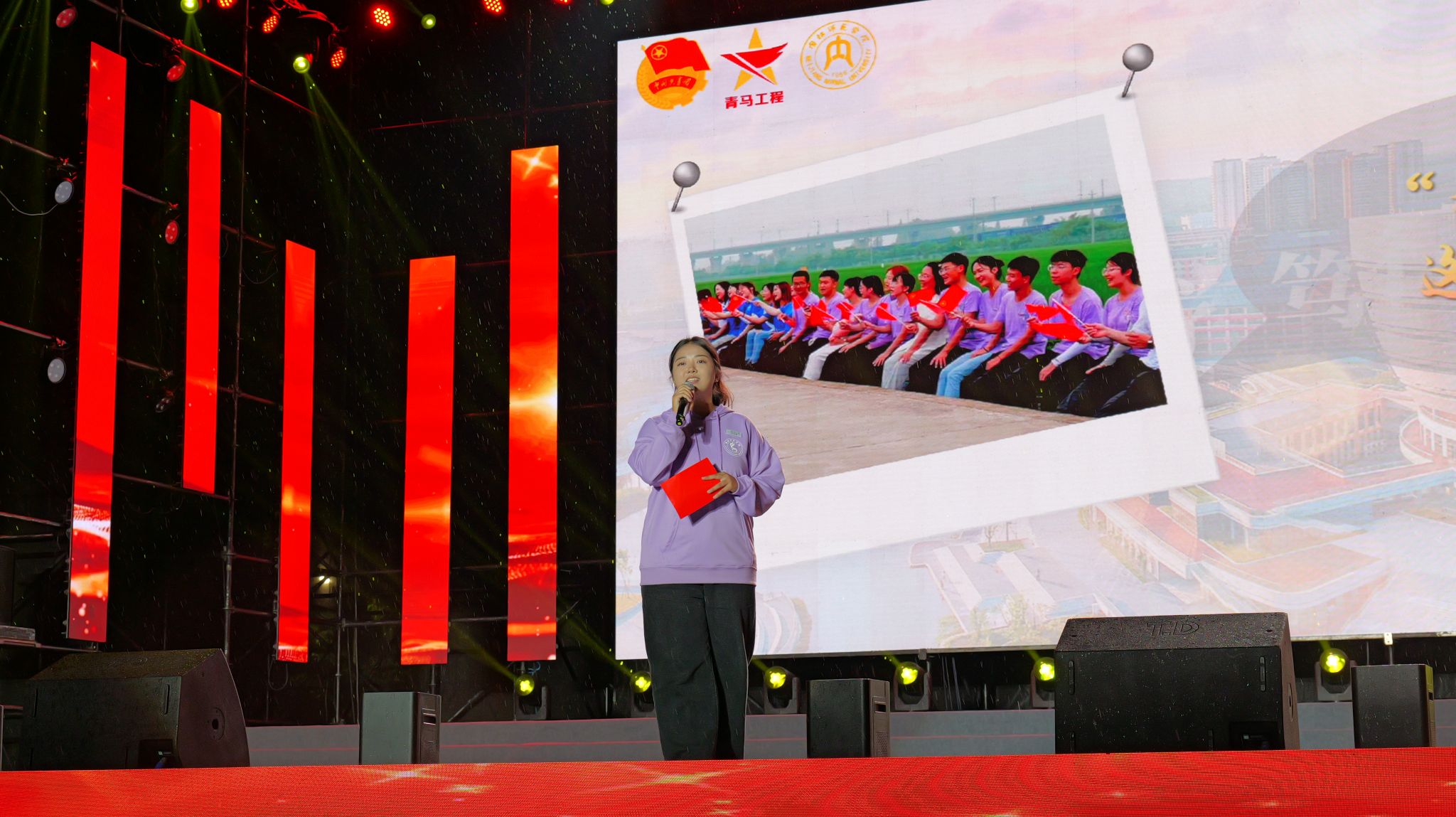 晚会中途虽遇大雨,但师生热情不减,学校及时分发雨衣,现场氛围持续热烈。来自音乐学院的参演学生袁璐表示:“希望学弟学妹勇敢尝试,不怕失败——舞台、社团、课堂,皆是你们发光的地方。”