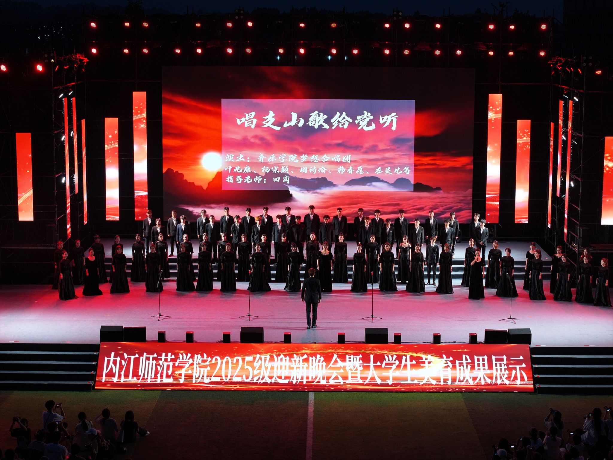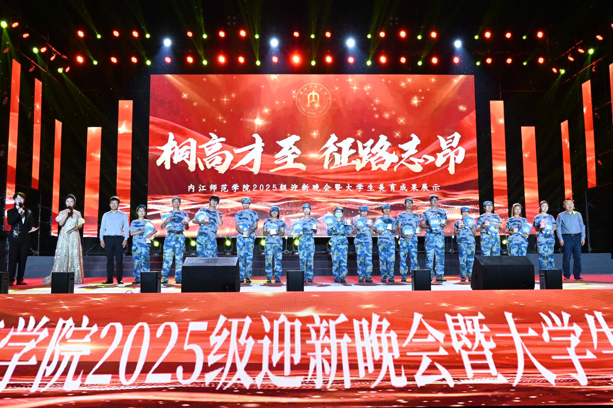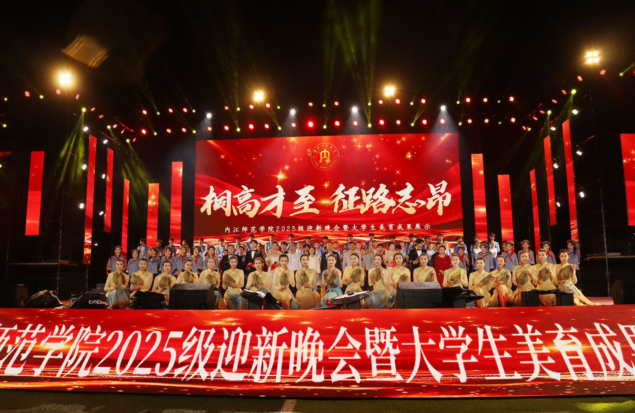 “桐高才至,征路志昂”。9月27日晚,学校2025级迎新晚会暨大学生美育成果展示在田径场精彩上演。校党委书记黄永忠与校党委副书记、校长郭云东等校领导,各职能部门与二级学院负责人、教师代表及全体新生共同观看了演出。