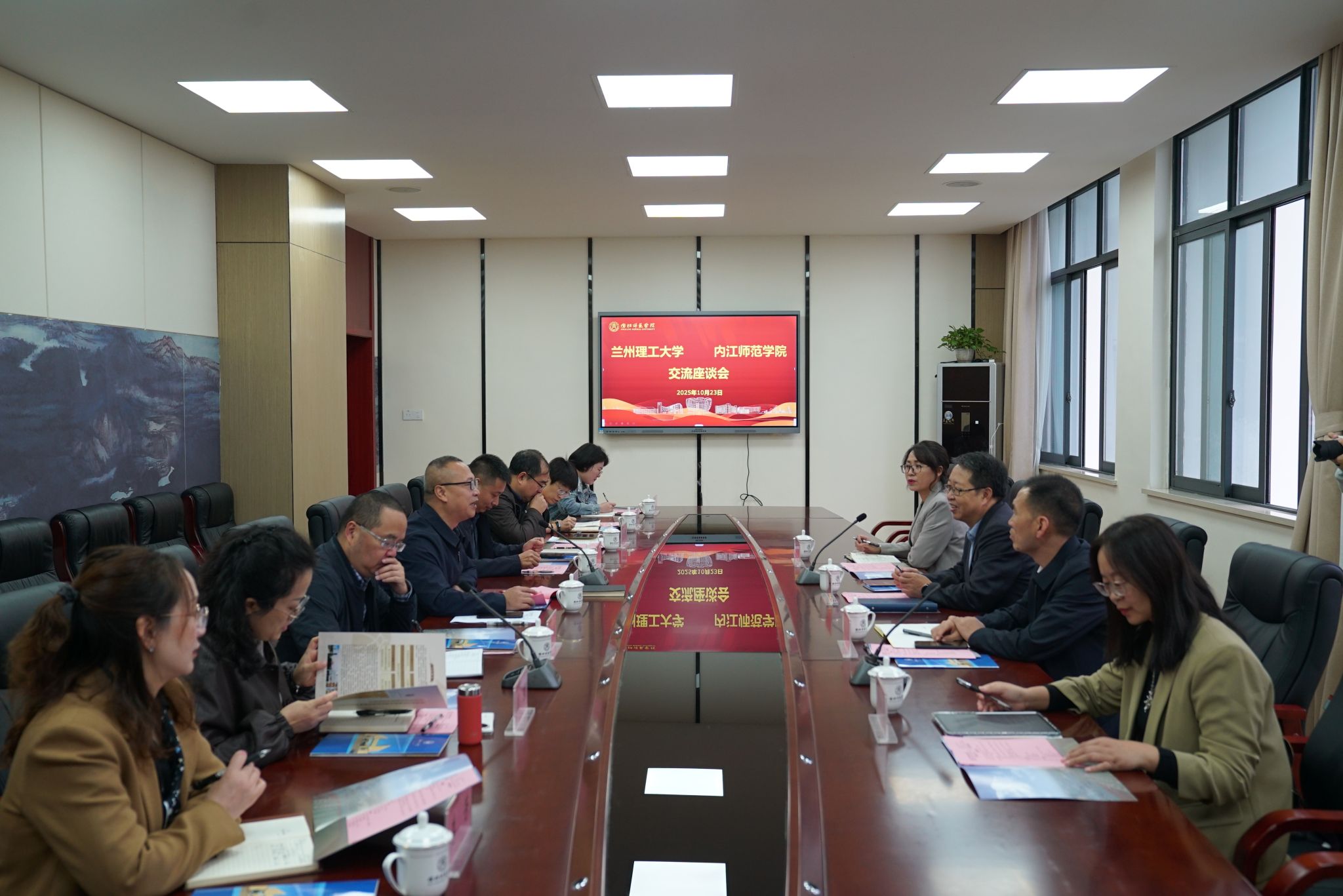 2025年10月23日上午,兰州理工大学副校长吕文英一行到访我校,专题调研数字人文本科专业建设与运行情况。交流座谈会在行知楼B202举行,学校党委常委、宣传部部长、统战部部长陈湘主持。
