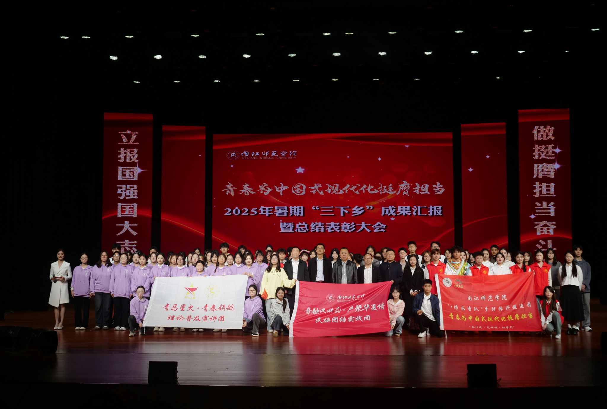 大会对荣获省级重点团队、校级优秀团队及社会实践先进个人的师生代表进行了表彰。校团委书记李其林作题为《立报国强国大志向,做挺膺担当奋斗者——从课堂到田野:内江师范学院共青团“四维联动”实践育人模式探索》的工作报告,系统总结了学校社会实践工作的创新机制与实施路径。