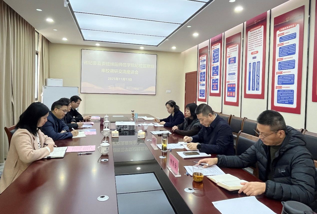 2025年11月13日,驻绵阳师范学院纪检监察组组长、校党委副书记、纪委书记曾庆亮率队到学校开展纪检监察工作调研交流。我校驻校纪检监察组组长、校党委副书记、纪委书记冯雪莲主持召开调研交流座谈会。
