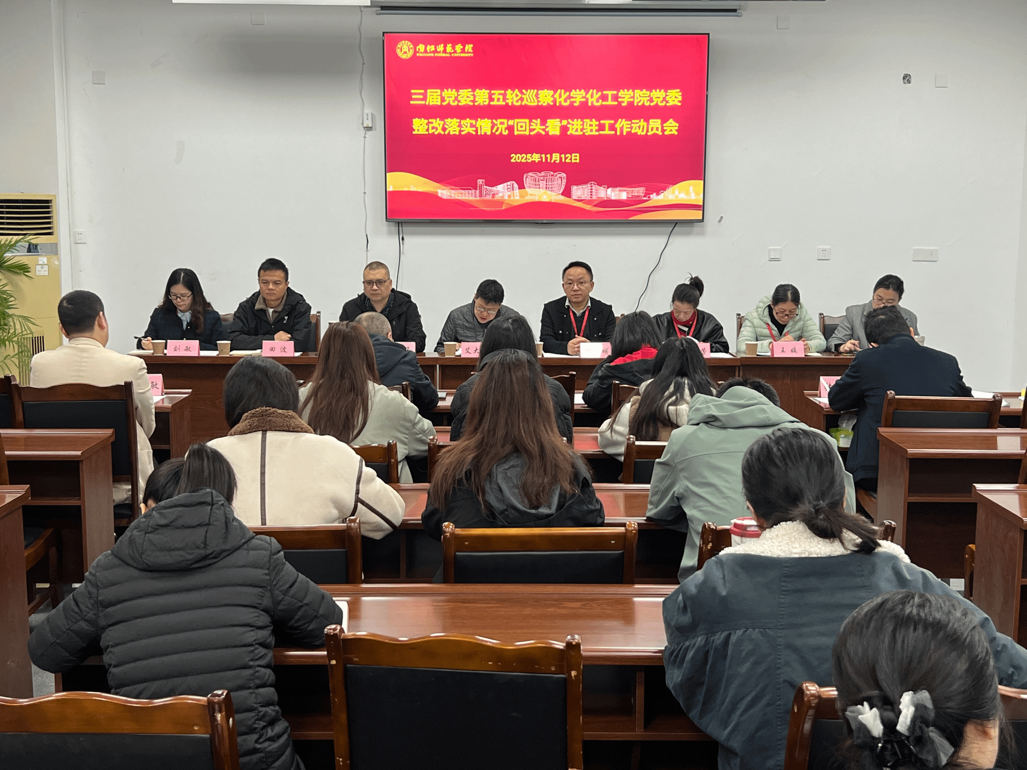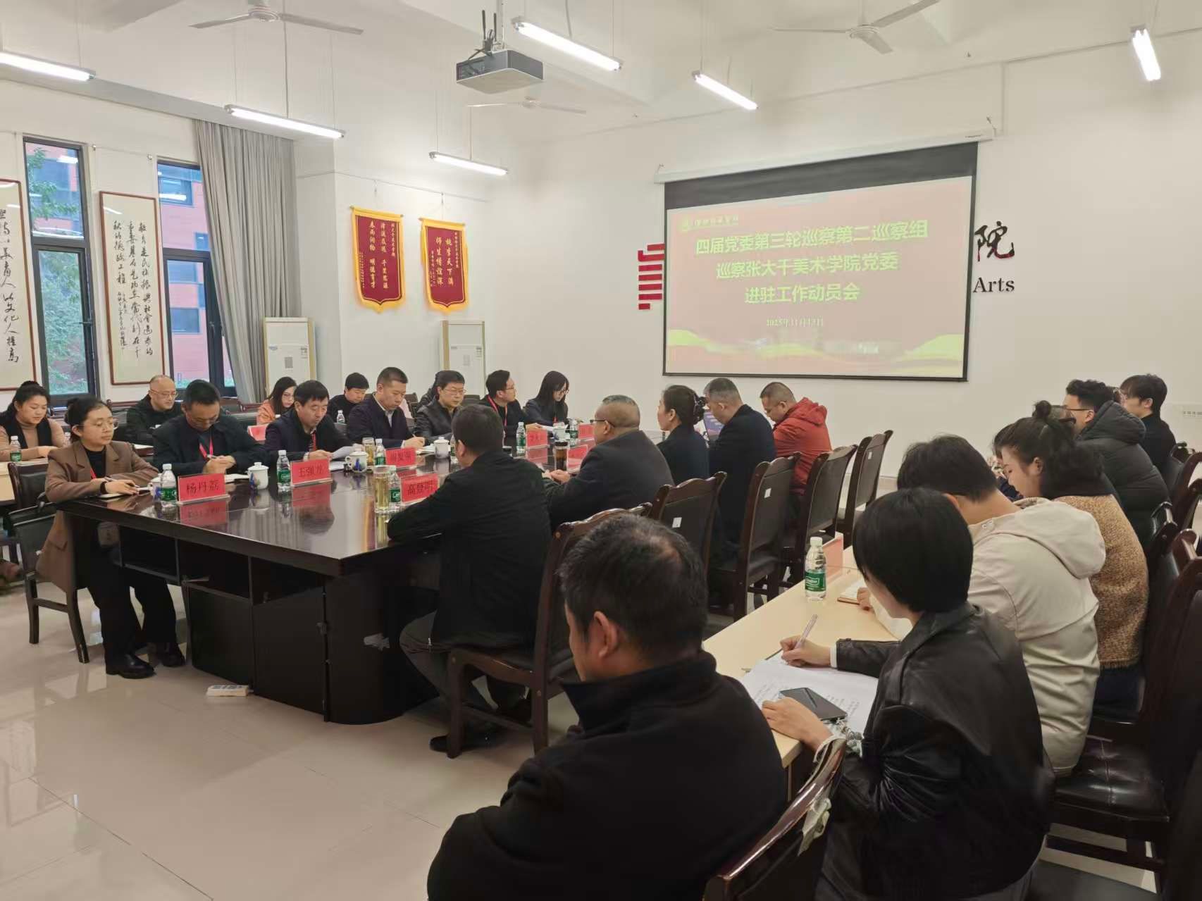 2025年11月13日至14日,四届党委第三轮巡察暨三届党委第五轮巡察整改落实情况“回头看”五个巡察组分别召开了巡察文学院党委、张大千美术学院党委、教育科学学院党委、科技处党支部、化学与环境工程学院党委、音乐学院党委进驻工作动员会。学校党委巡察工作领导小组成员、巡察组全体成员、巡察办公室负责人、被巡单位领导班子全体成员、师生代表等参加动员会。