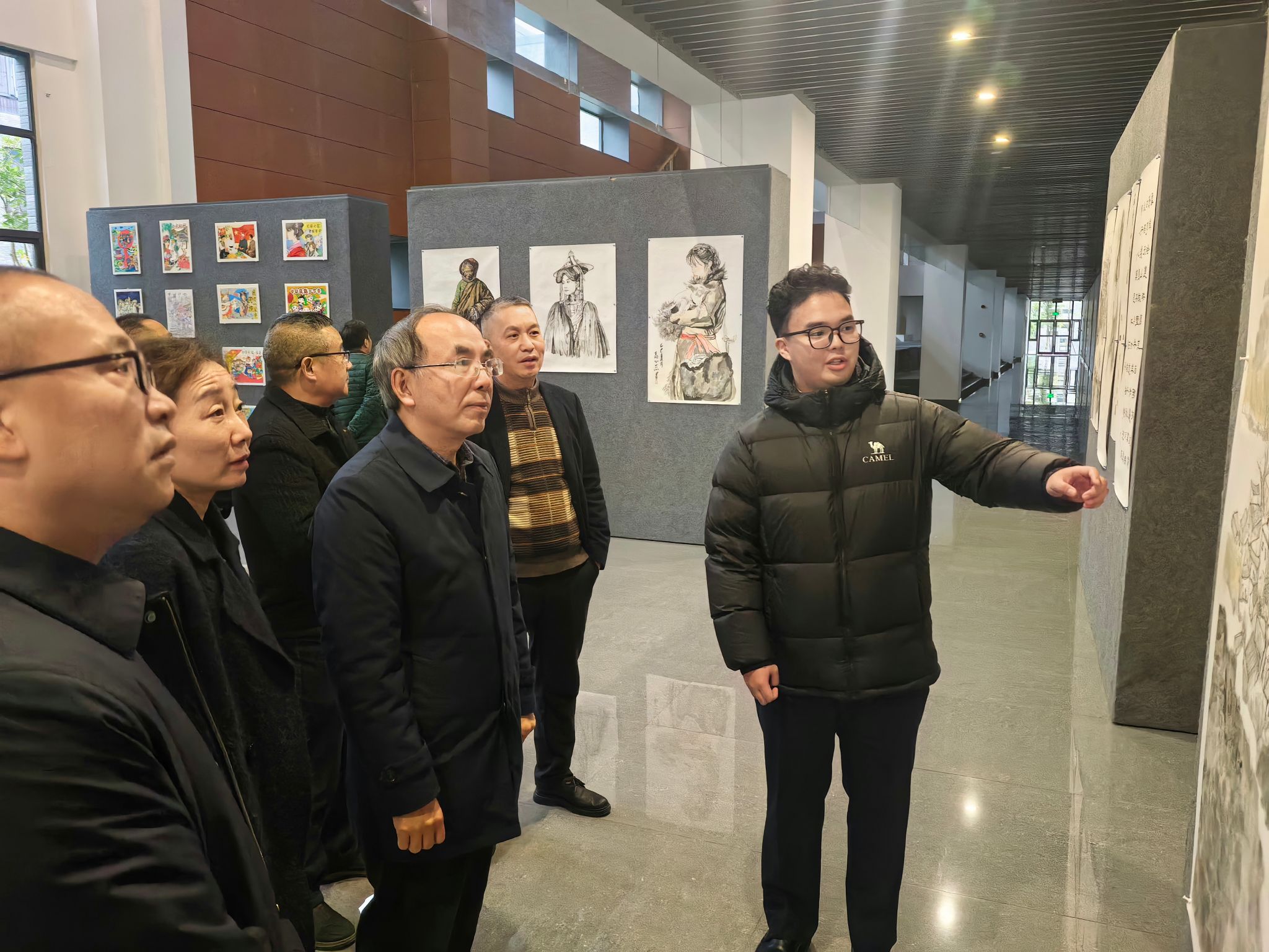 2025年11月18日下午,学校“中华民族一家亲,同心共筑中国梦”民族团结进步书画展在大千楼A区一楼展厅正式开展。校党委副书记黄辉带队观展指导,党委常委、宣传部部长、统战部部长陈湘及张大千美术学院教师陪同参观。