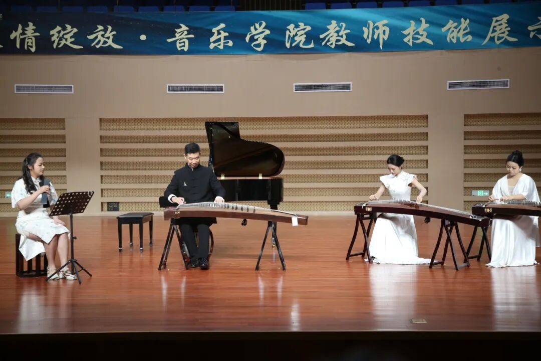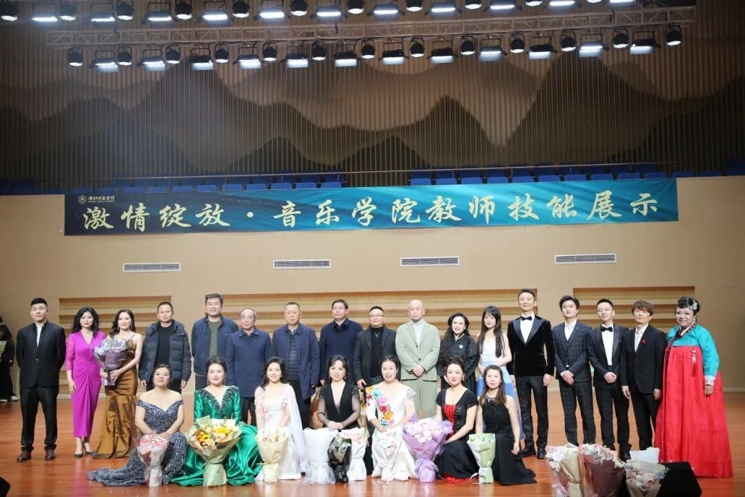 11月18日下午,器乐专场率先登场。钢琴、古筝、二胡、大提琴、竹笛等乐器轮番奏响,教师们技艺娴熟、配合默契,展现出扎实的专业功底和艺术表现力。当晚的声乐专场中,教师们演唱了古典著作、经典曲目与现代佳作,涵盖中外多种声乐体裁。从朝鲜族民歌到意大利咏叹调,从美声到民族唱法,教师们用精湛的演唱技巧和细腻的情感表达,赢得观众热烈掌声。11月19日晚的舞蹈专场将活动推向高潮。教师们表演了古典舞、民族舞等多个舞种,以精准的动作控制和饱满的情感投入,将舞蹈艺术与教学实践深度融合,彰显了舞蹈教育的专业水准和艺术感染力。