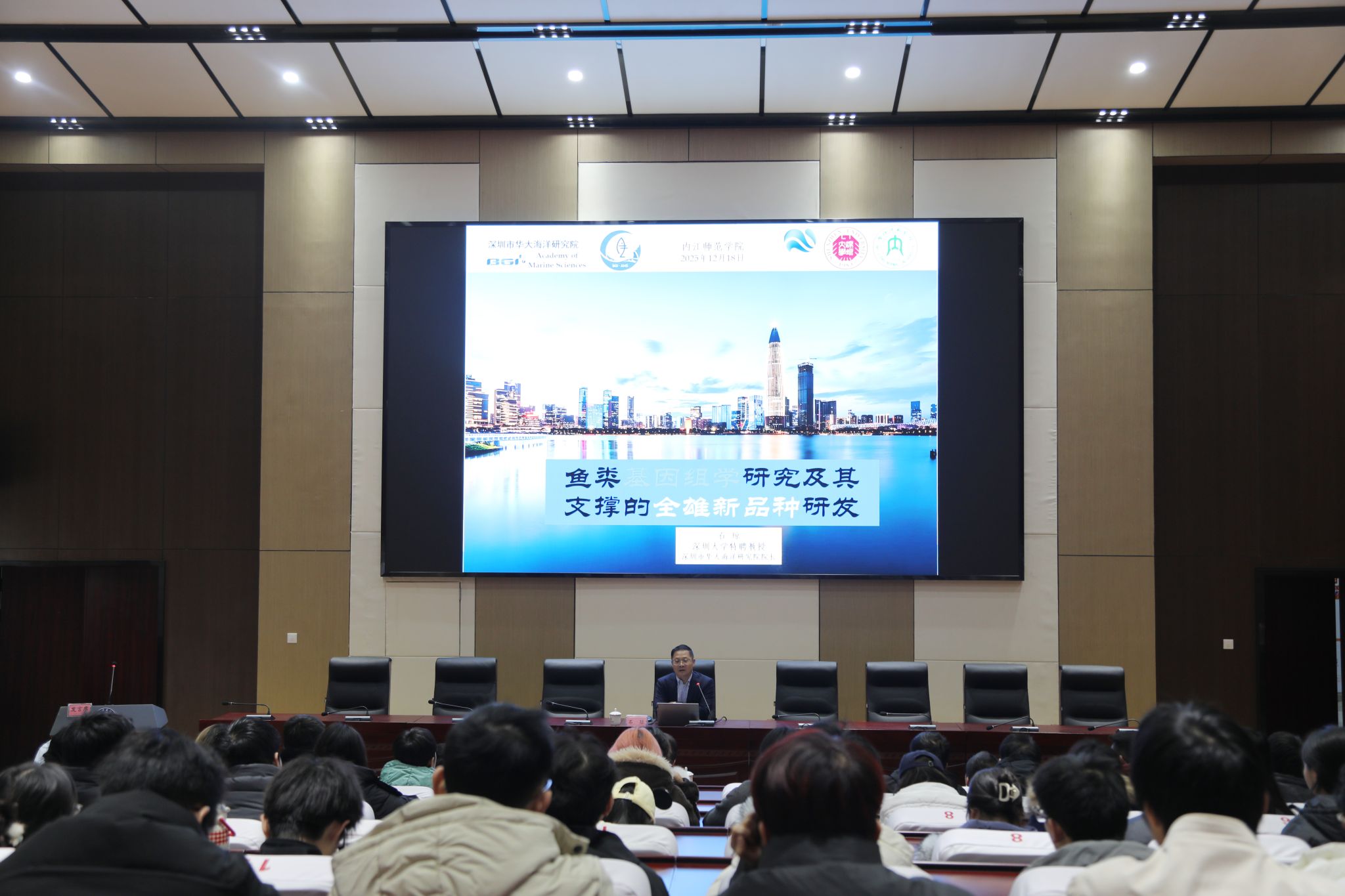 2025年12月18日上午,深圳大学生命与海洋科学学院特聘教授、俄罗斯自然科学院外籍院士石琼教授,在行知楼B104作了题为《鱼类基因组学研究及其支撑的全雄新品种研发》的专题讲座。学校党委常委、副校长胡金朝教授出席讲座,水产学院院长覃川杰教授主持。