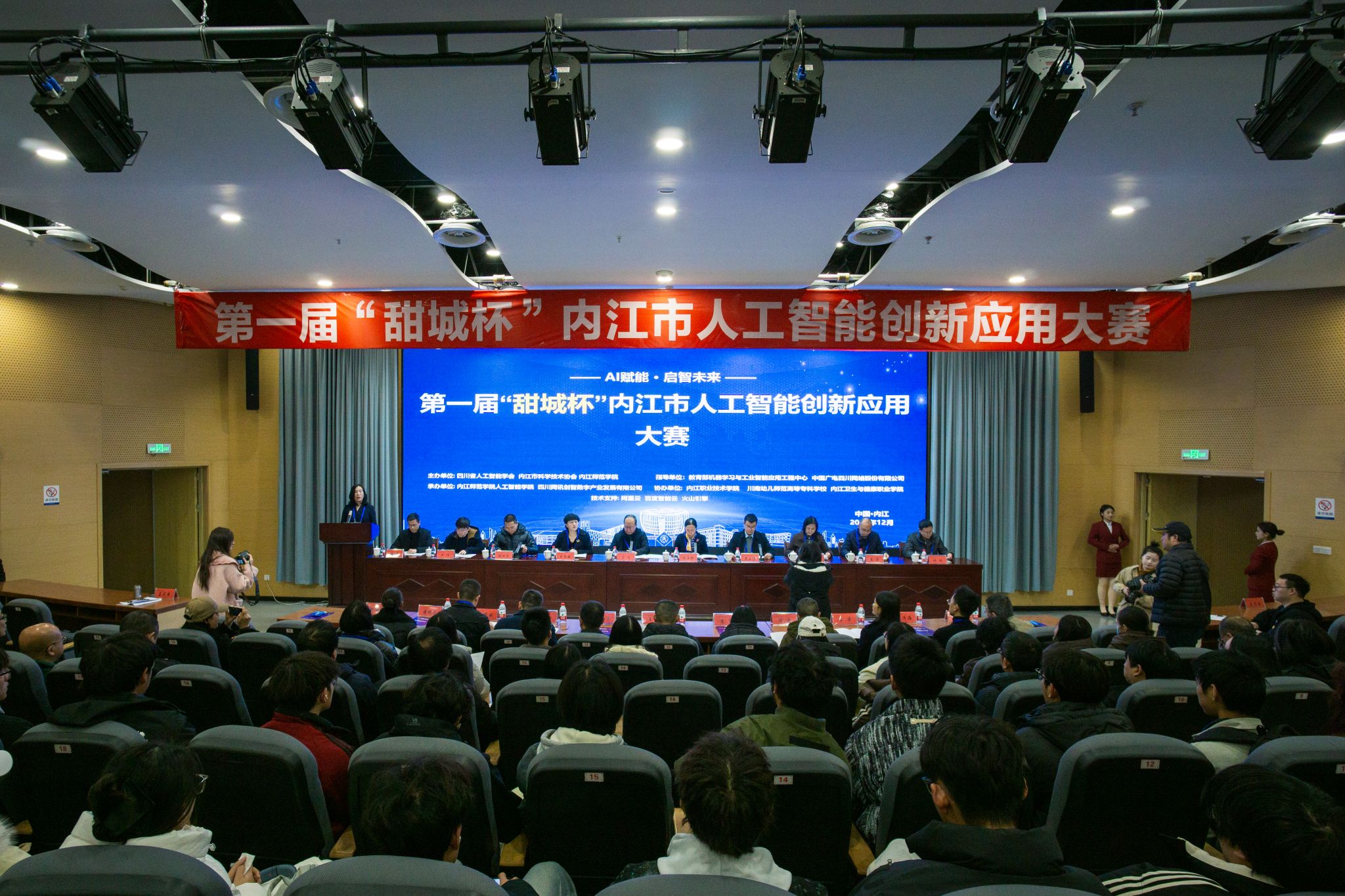 2025年12月28日,第一届“甜城杯”内江市人工智能创新应用大赛决赛在我校圆满收官。内江师范学院、内江职业技术学院、内江卫生与健康职业学院、川南幼儿师范高等专科学校千余名学子同台竞技。