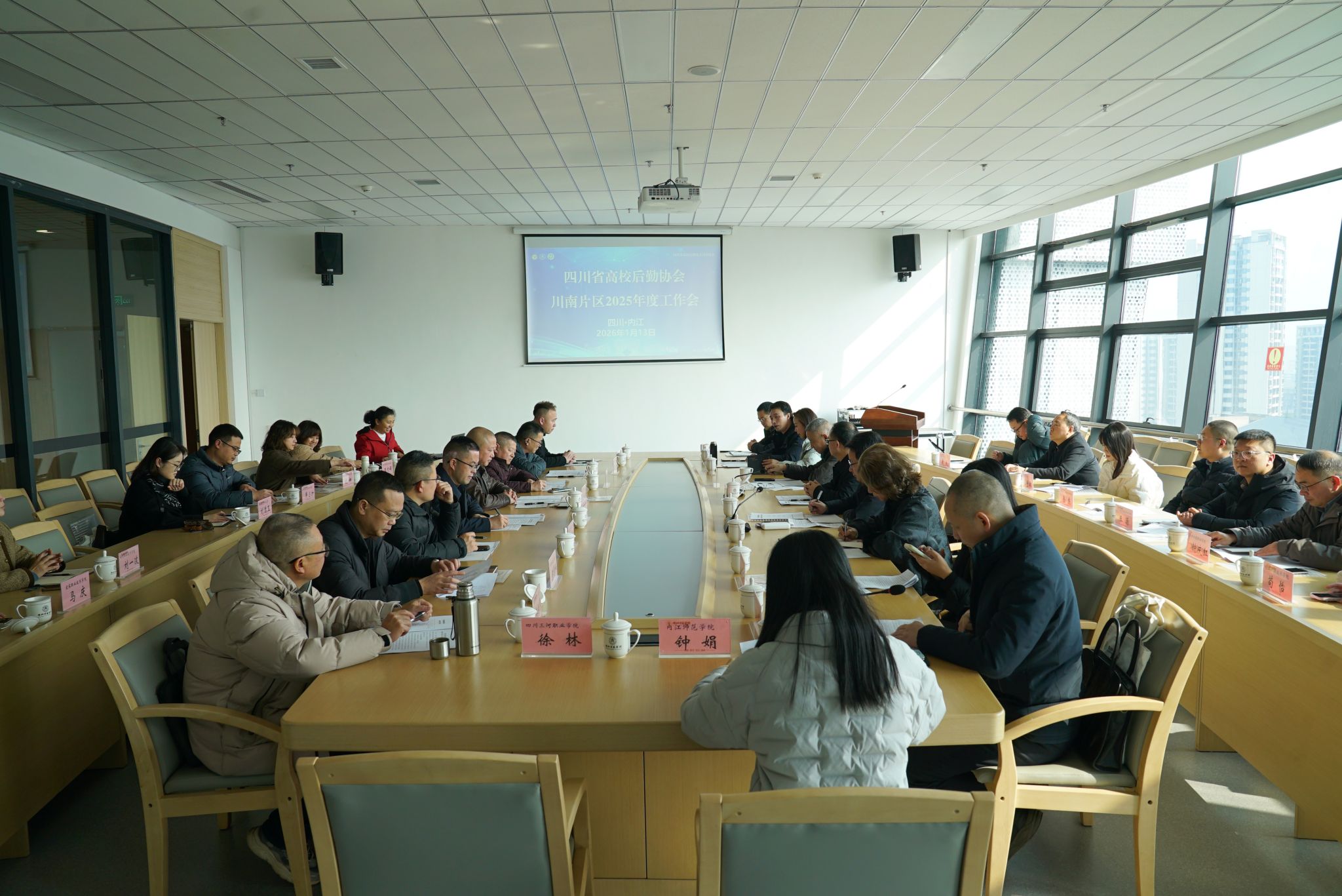 2026年1月13日,四川省高校后勤协会川南片区2025年度工作会议在学校召开。学校党委常委、副校长、组织部部长张志勇,四川省教育厅后产中心、四川省高校后勤协会负责人出席会议。来自川南片区19所高校的34名后勤部门负责人参加会议,四川轻化工大学后勤保障部部长黄斌主持会议。