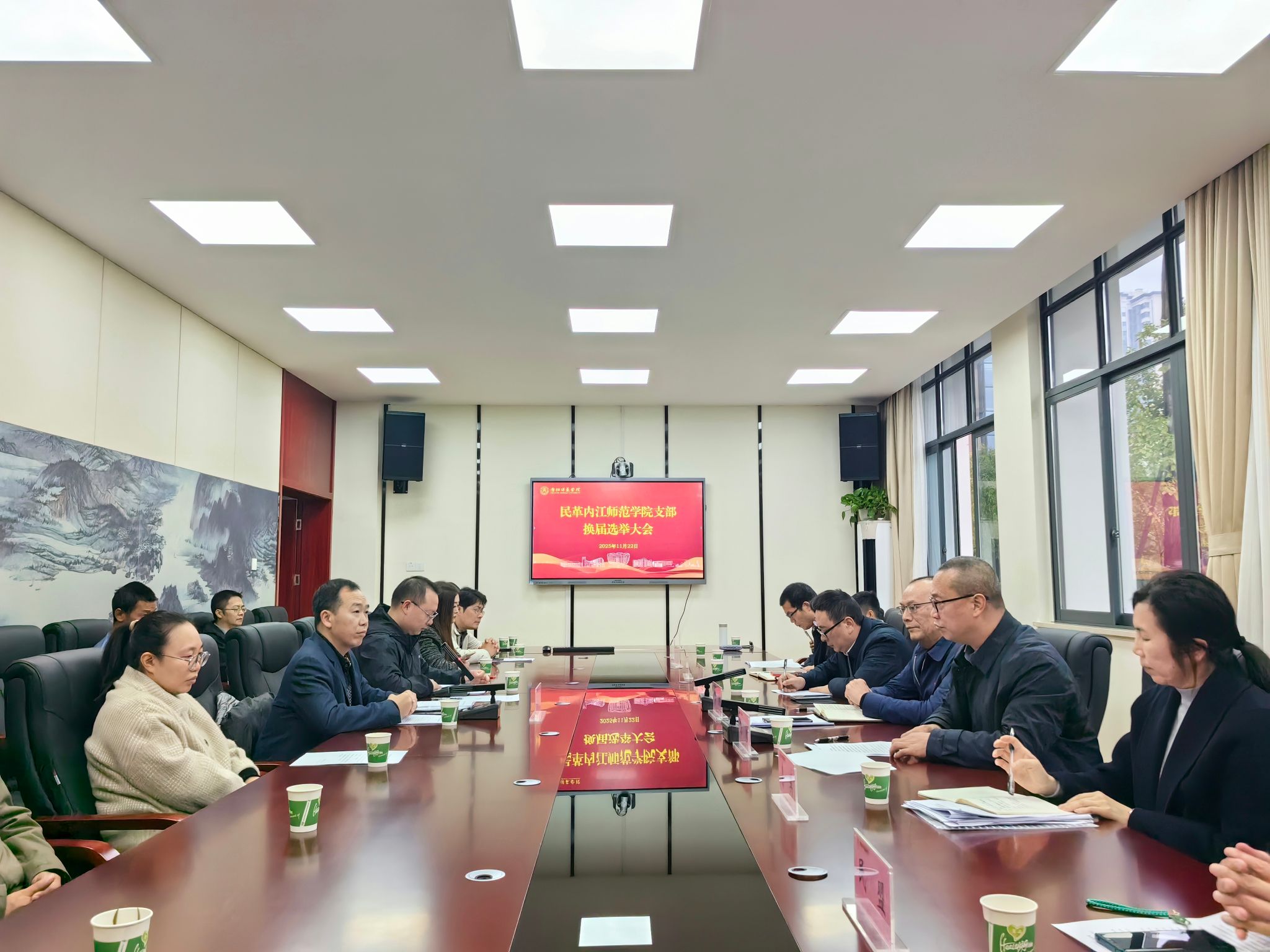 2025年11月22日下午,民革内江师范学院支部换届选举大会在行知楼B101会议室顺利举行。民革内江市委专职副主委廖洪,内江职业技术学院副院长、副主委方飞,学校党委常委、宣传部部长、统战部部长陈湘,民革市委秘书长李英等出席大会。