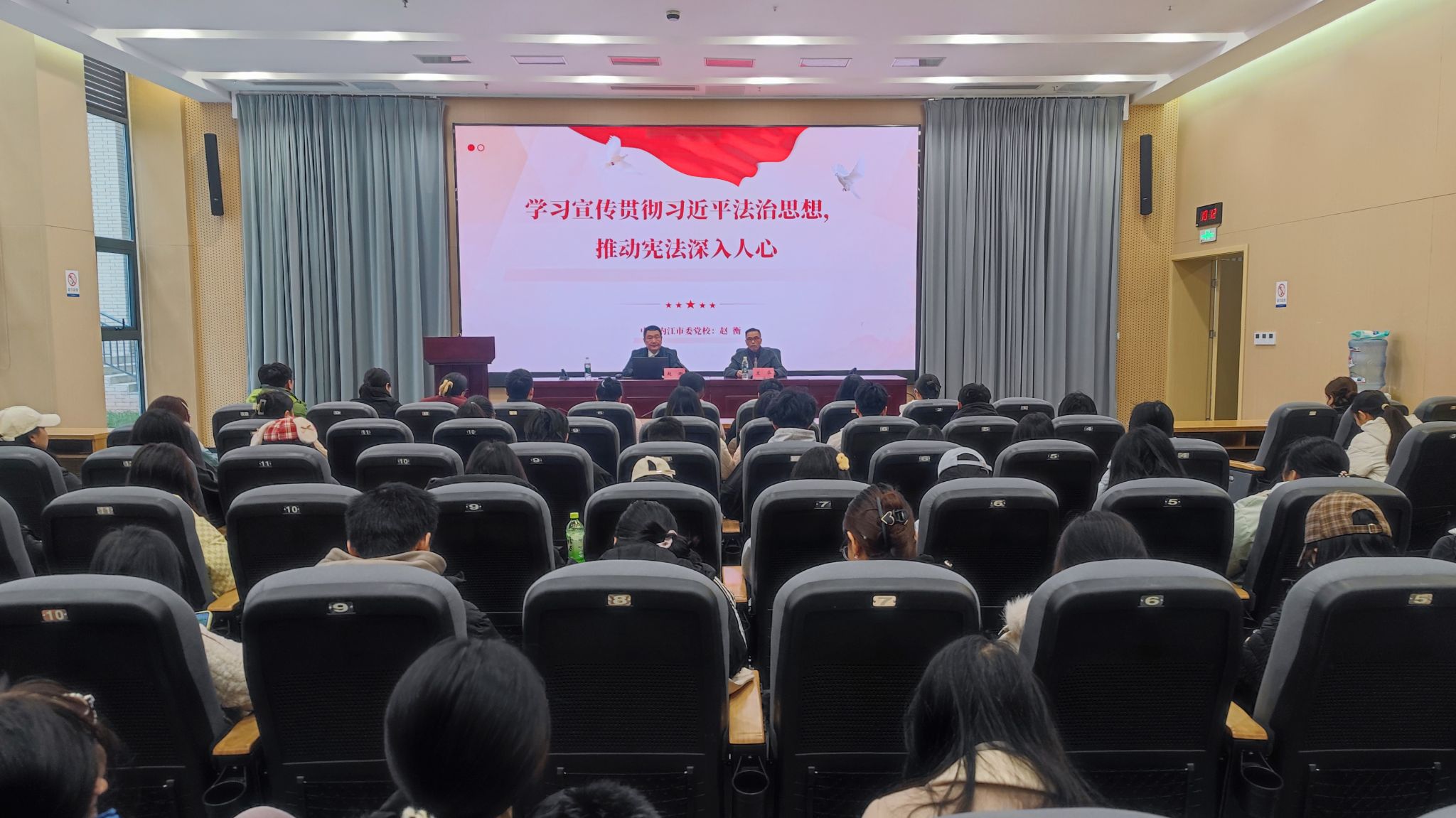 本次讲座是学校2025年“宪法宣传周”系列活动的重要组成部分。各二级学院师生代表100余人参加学习。