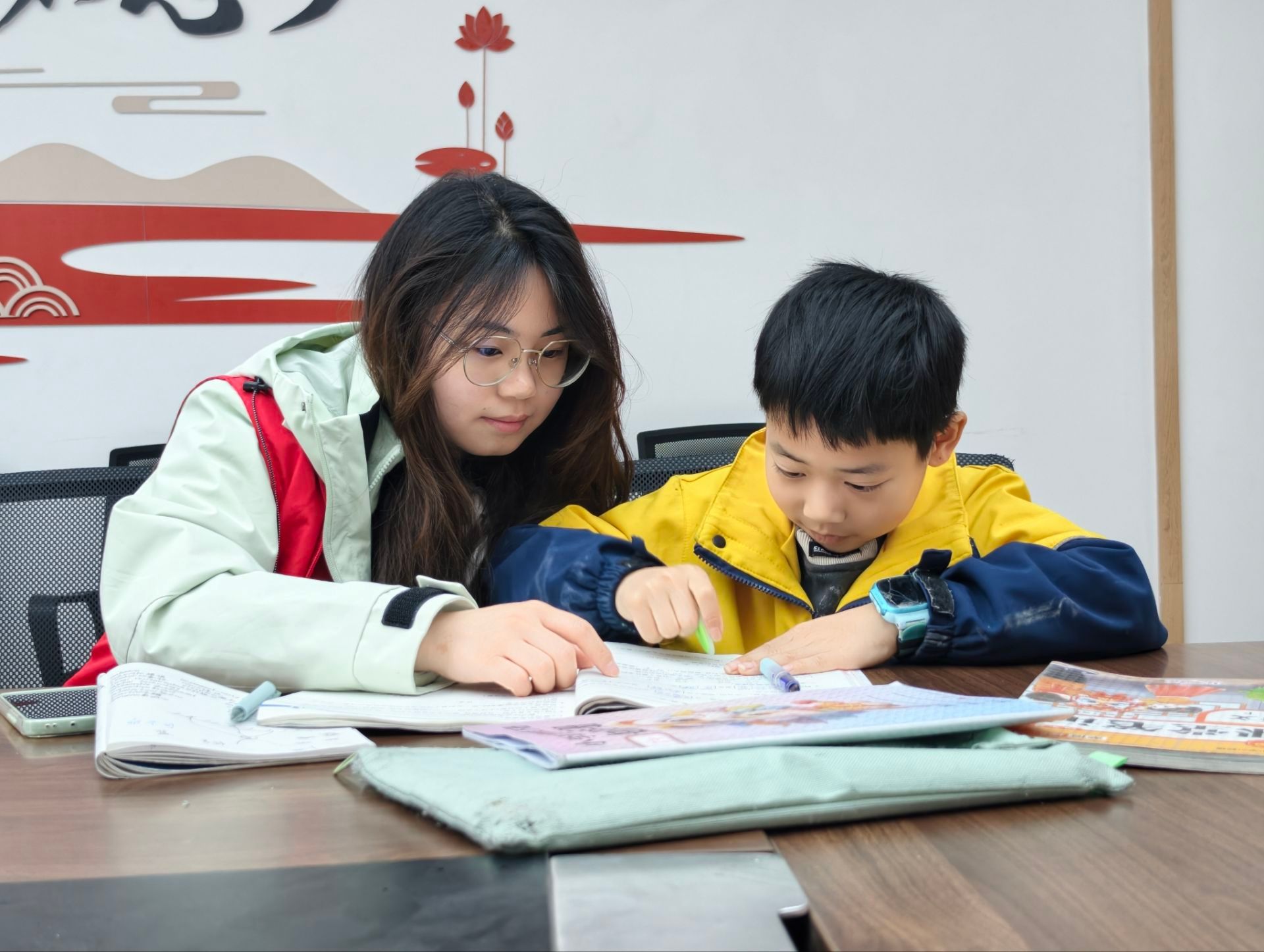 护航青少年成长:全方位呵护健康成长。志愿服务队深入社区、福利院、文化场馆,开展课业辅导、素质拓展、垃圾分类宣讲、心理绘本共读、非遗普及、博物馆讲解等活动。针对困境儿童开设美育兴趣班,通过一对一辅导和益智游戏夯实学业基础,同步开展传统文化、环保实践、国防教育等特色课程。
