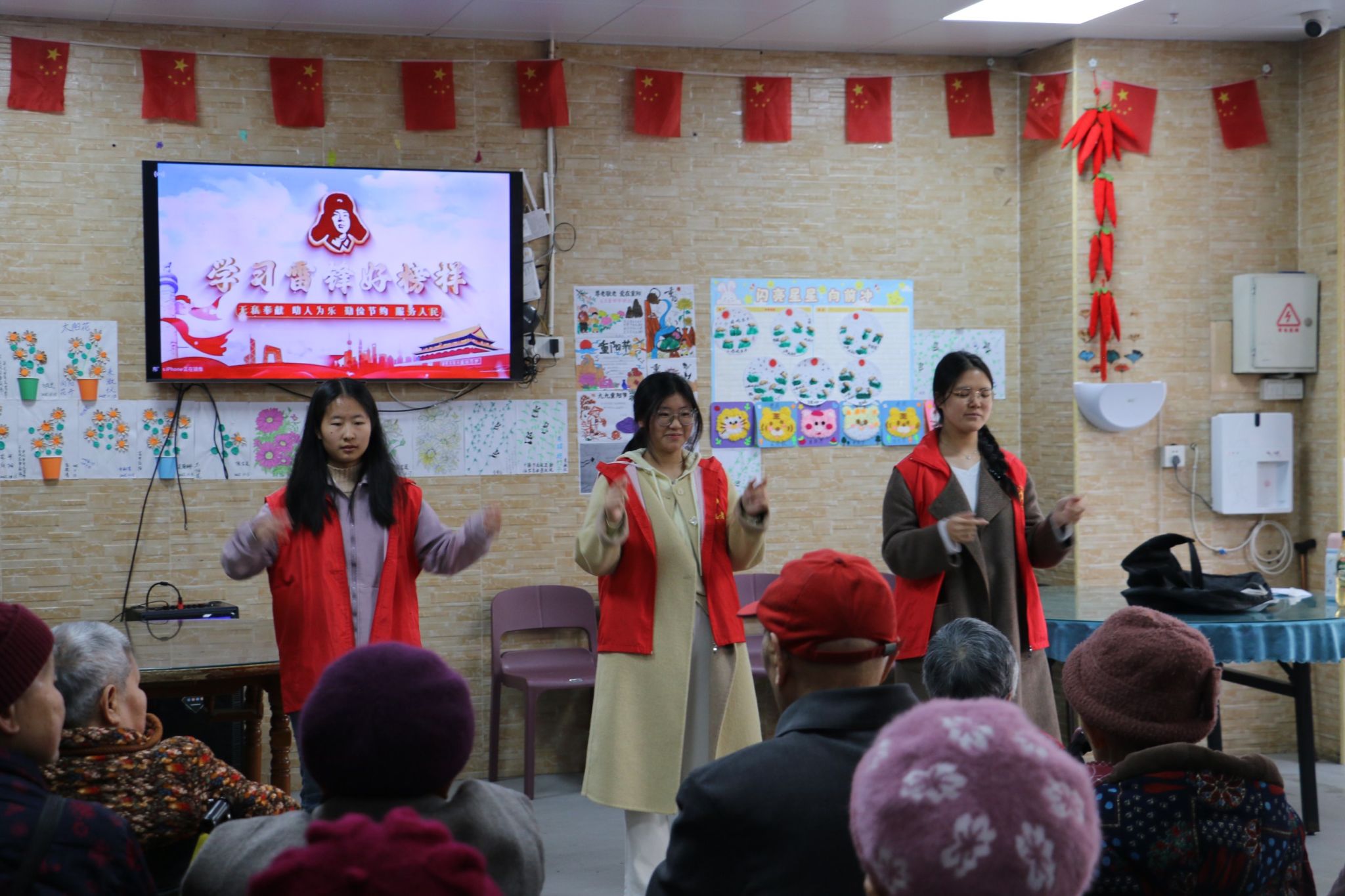敬老爱老:用青春温度守护银龄岁月。志愿者走进养老公寓、社区综合为老服务中心及校内退休教职工服务点,陪伴老人唠家常、整理内务,精心编排文艺节目、组织手工互动,并结合实际需求开展暖心辅导,用青春温度守护银龄岁月,让尊老敬老蔚然成风。