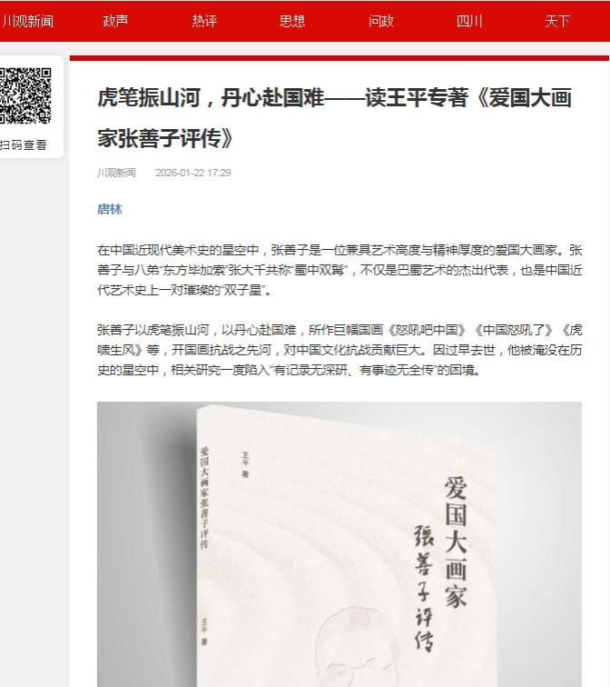 王平博士参评的是文艺评论项目,全省仅有7项入选。《爱国大画家张善子评传》共25万余字,全书以爱国大画家张善子的爱国人生为主线,以详实的史料,首次全面梳理张善子从革命少年、虎画大家、抗战美术先锋到艺术外交使者的多元人生轨迹,诠释了其“丹青报国”的爱国情怀与精神境界。该书于2025年11月由四川美术出版社正式出版,是四川省社会科学重大项目“大风堂传承研究”的结项成果之一。著名美术史学者,四川省社会科学院艺术研究中心主任唐林教授撰文评价该书:“作为张善子传记的第一本专著,填补了张善子学术研究空白和中国抗战美术研究的部分空白。”该成果的最终成功入选,充分展现了我校民进会员扎实的专业能力与学术水平。