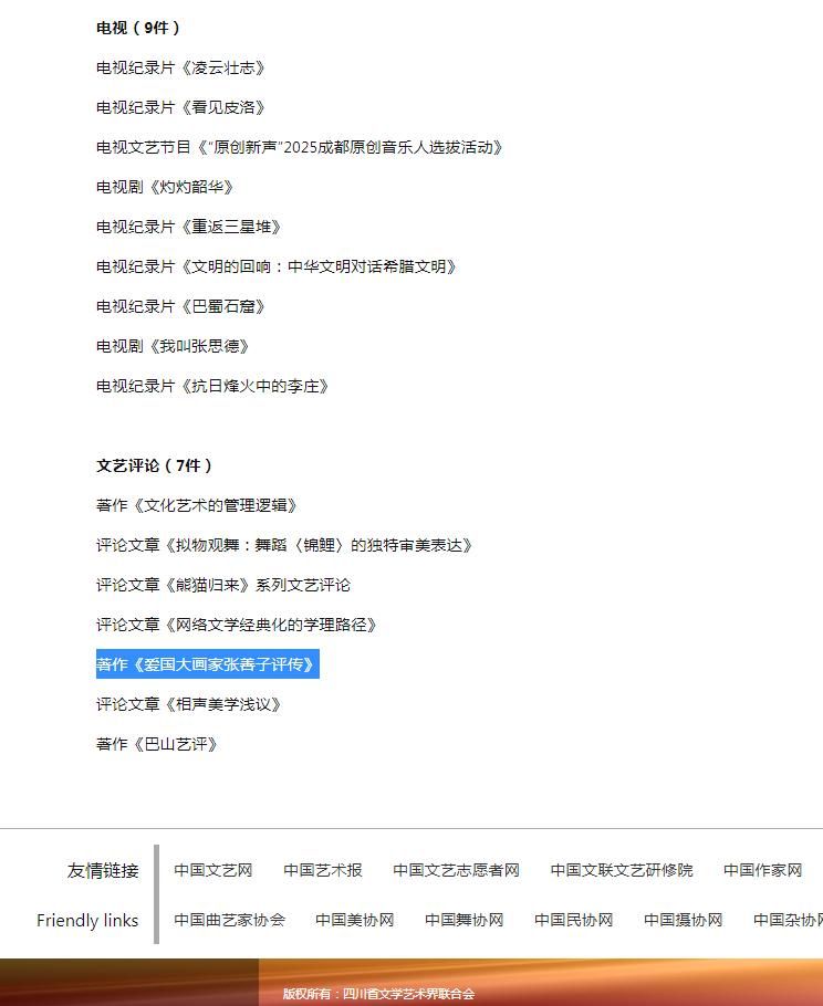 近日,四川省文学艺术界联合会2025年度“百佳推优”工程入选名单正式发布,我校民进会员、张大千美术学院副研究员王平博士的学术专著《爱国大画家张善子评传》入选四川省文联2025年度“百佳推优”工程,这是内江市仅有的两件入选作品之一。