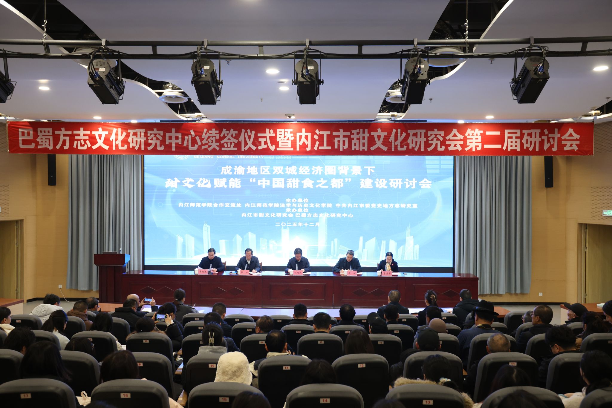 2025年12月25日,巴蜀方志文化研究中心合作协议续签仪式暨“成渝地区双城经济圈背景下甜文化赋能‘中国甜食之都’建设研讨会”在我校会议中心成功举办。四川省地方志办党组成员、副主任刘自强,重庆市地方志办副主任徐斌,内江市人民政府副市长张永,内江师范学院副校长李益彬等出席活动。 此次活动由学校...