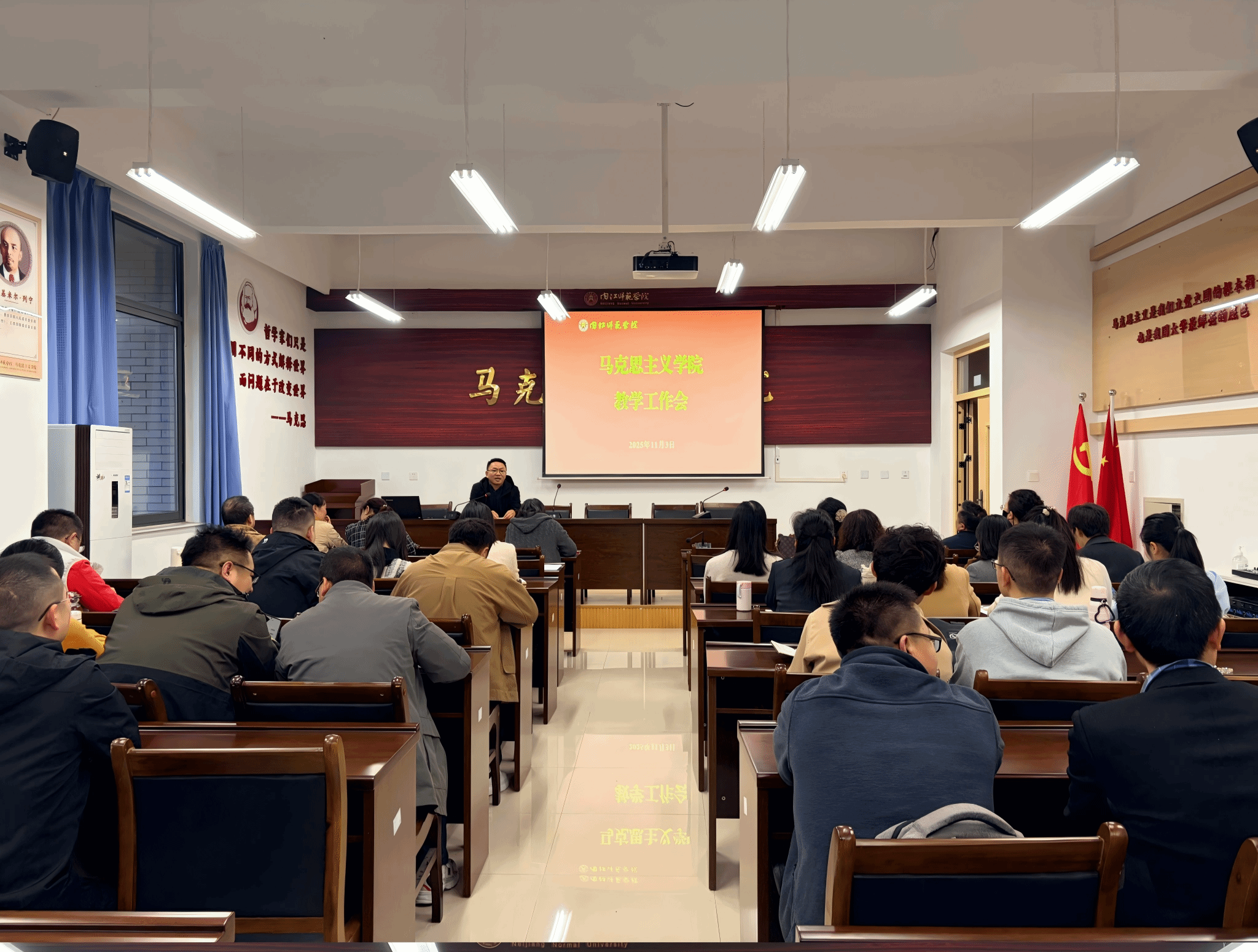 2025年11月3日,马克思主义学院召开教学工作会,围绕思政课教学质量提升、数智技术赋能教学创新、当前教学问题剖析与发展规划等议题开展深入研讨。学院班子成员、全体教师及合作单位代表参会。智慧树咨询师李慕然作《技术赋能·思政焕新——打造有温度、有深度、有吸引力的思政金课》专题分享,从虚拟仿真...
