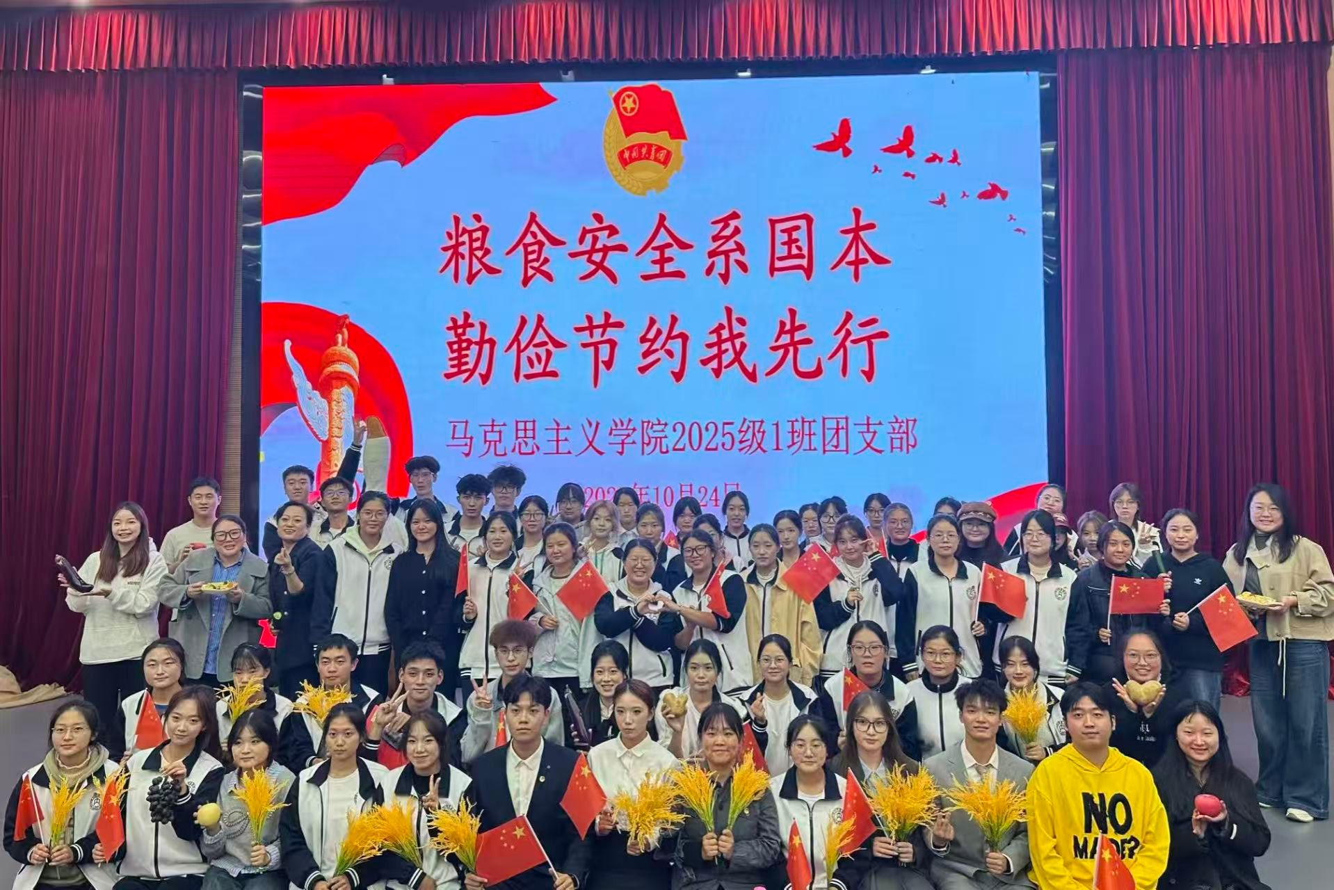 2025年10月24日晚,马克思主义学院在大千楼A102举办“粮食安全系国本,勤俭节约我先行”主题团组织生活会。学院党委副书记刘正丽、学工办全体辅导员、2025级班主任及全体新生共同参与,校学生会代表列席。活动在齐唱团歌中拉开帷幕。师生一同观看了纪录片《2025年乡村全面振兴——保障粮食安全》,深入学...